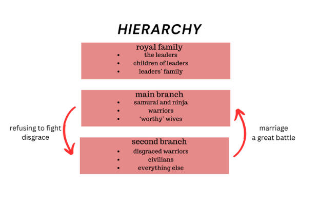 In both the Kurai and Hikari branches, there were factions of members who branched off. The Fujishiro clan were the first to branch off - having fled to the Land of Iron. They were Kurai descendants who had claimed soil in a different land. Of the Hikari, two factions formed - the Fujikaze and Fujihana. The Fujishiro are regarded as a brutal clan, ruling with an iron fist - whereas the Fujikaze and Fujihana clans are loyal supporters and allies to the Fujiwara. There is currently a lot of generational tension between the Fujiwara and Fujishiro.